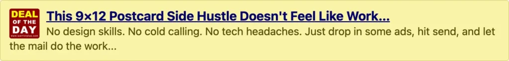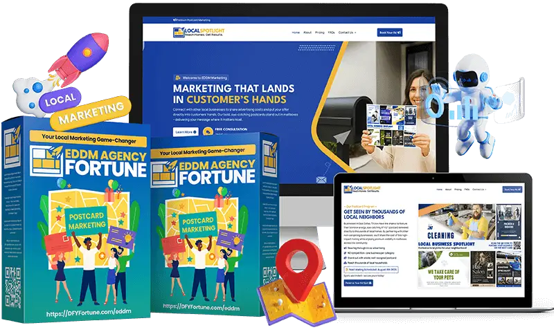 Starting a local marketing agency once required tech skills, sales experience, and hours of setup – not anymore. EDDM Agency Fortune gives you a DFY website, training, templates, and tools to launch your 9×12 postcard business fast.
